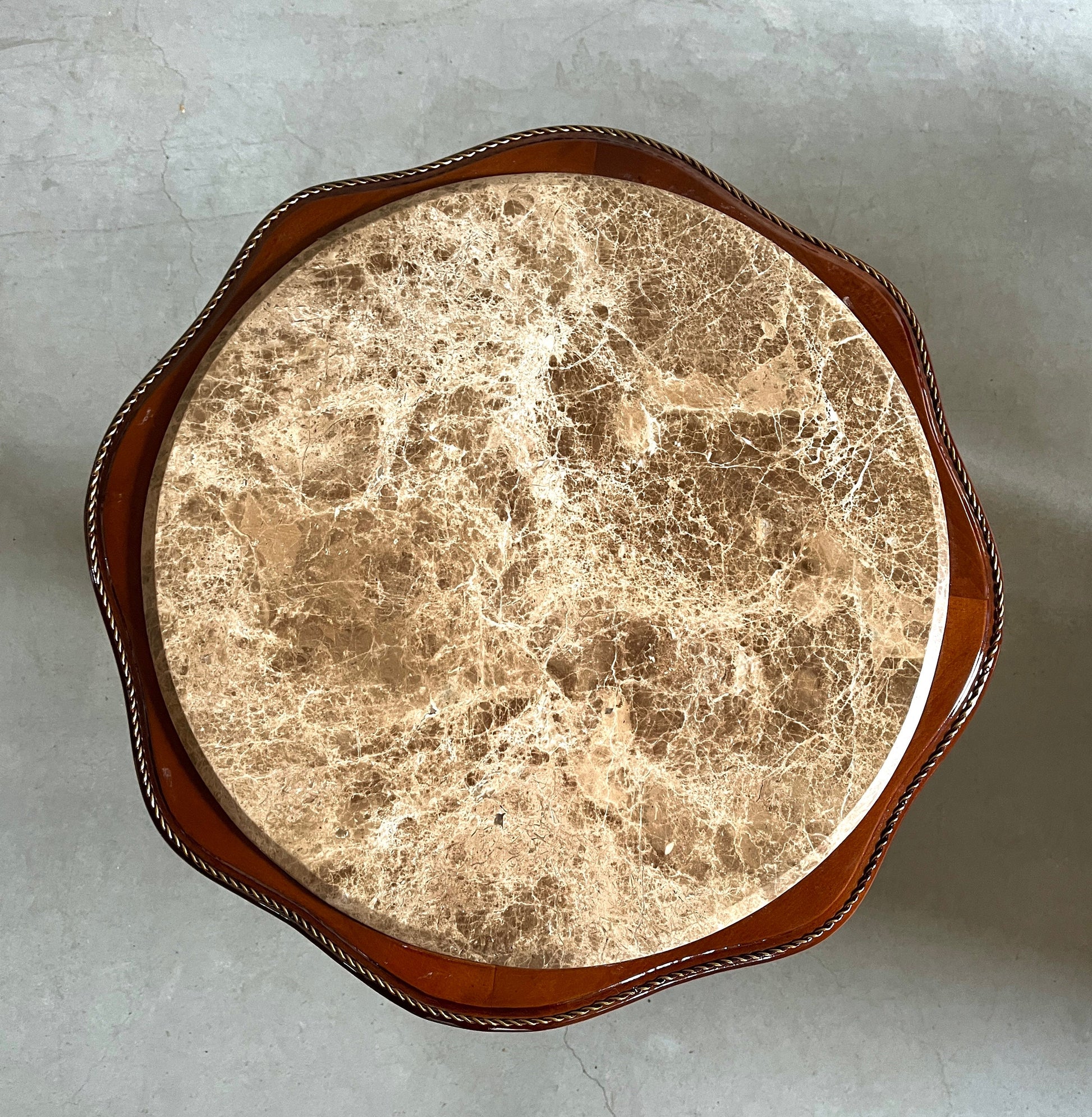 Side Table Marble Top Retro Baroque Style Tea Table Café Table Antique Style Wooden Table with Marble Top for Home Decor