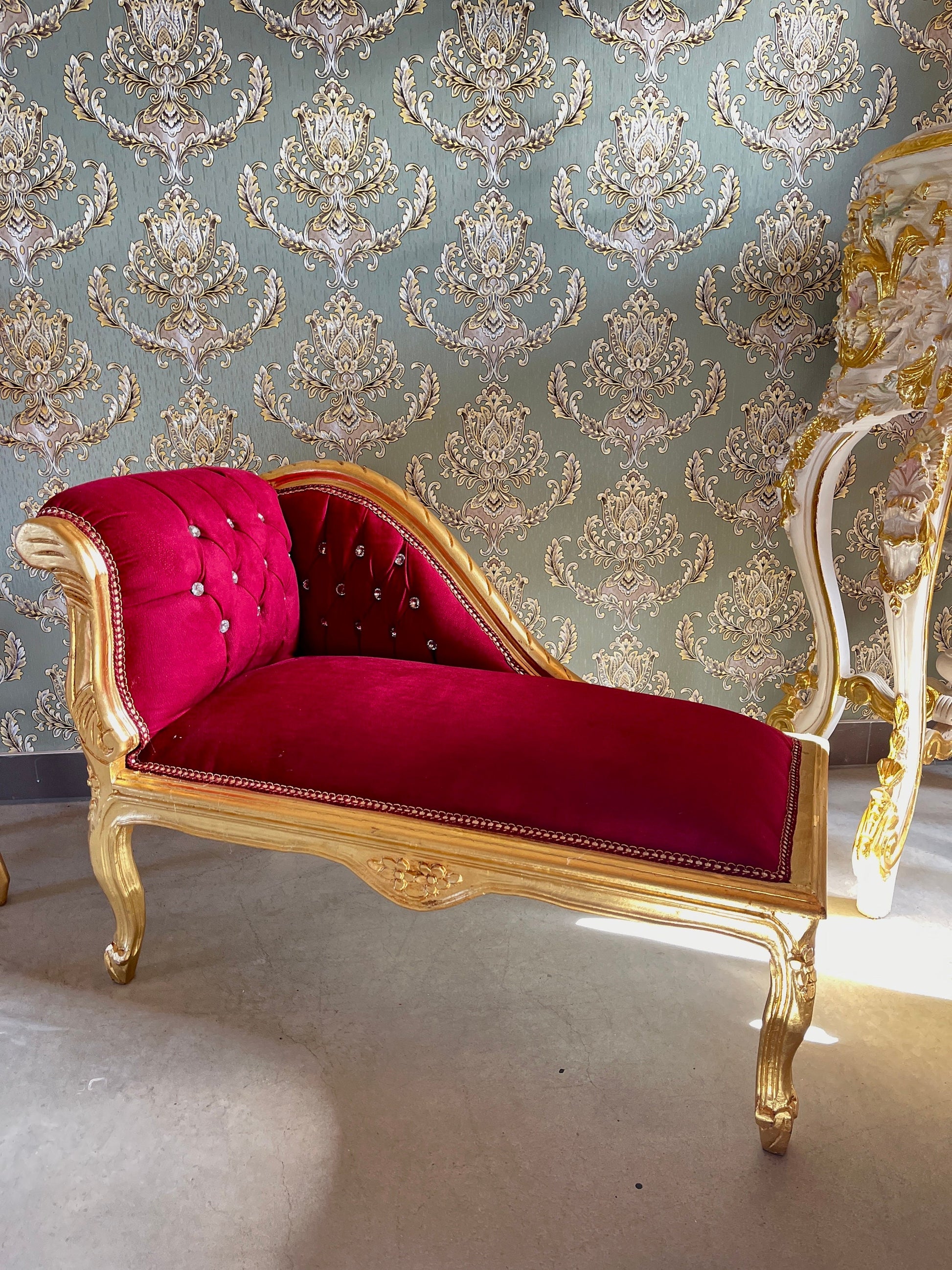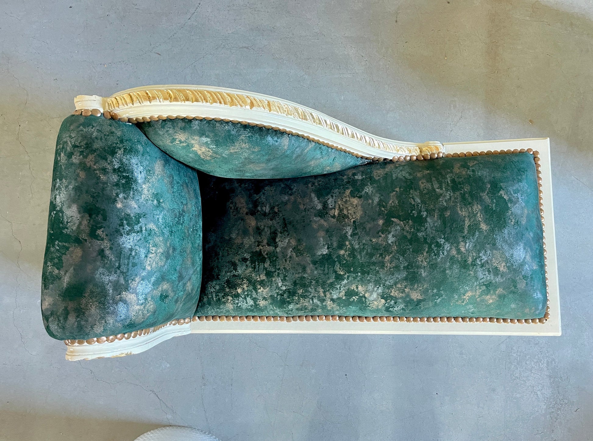 A French Louis small chaise longue in forest green color baroque style reproduction. It can be set as a bed bench or at entry porch settee. Absolutely enrich your elegant bedroom 💯