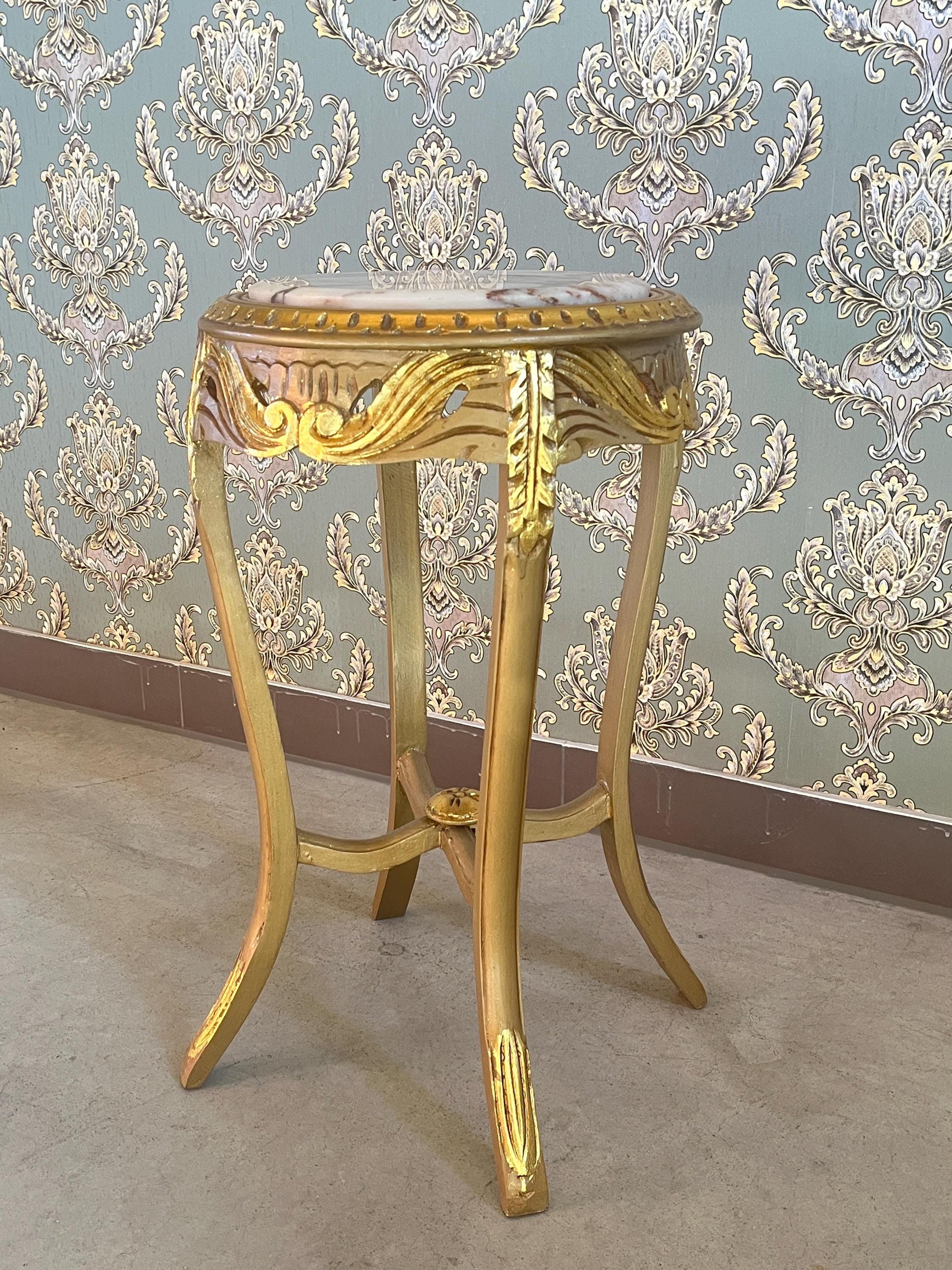 Small Side Table Baroque Rococo Style with Marble Top in Gold Finish Tea Table Coffee Table for Home Decor