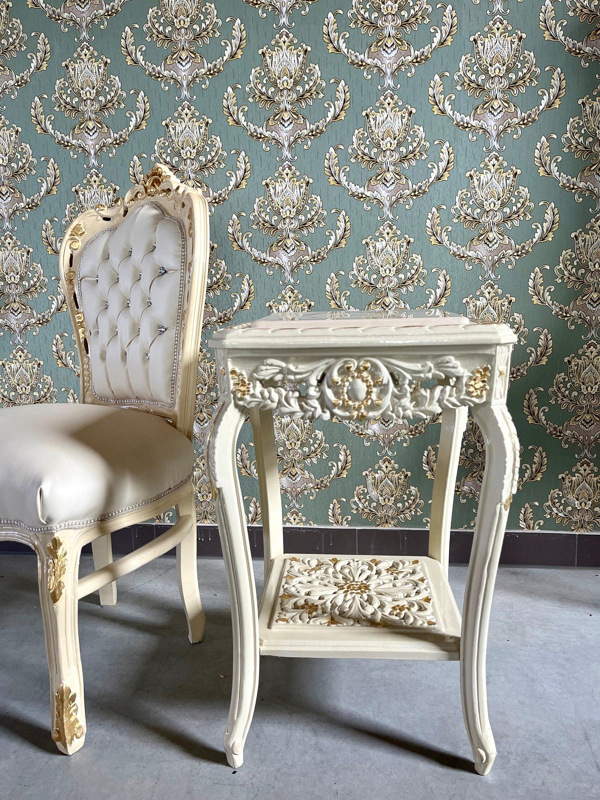 Baroque Marble Top Side Table: French Louis Style, Gold/Beige Finish