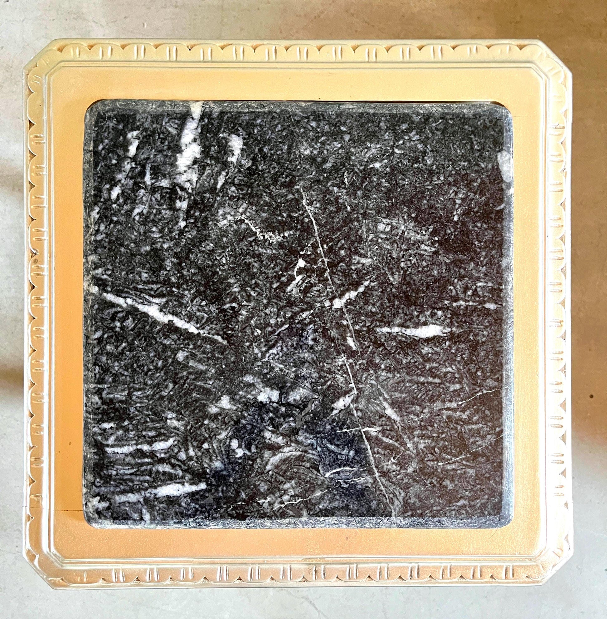 Square Side Table Silver Frame With Black Marble Top Retro Baroque Style Handmade Coffee Table in Silver Finish for Living Room End Table