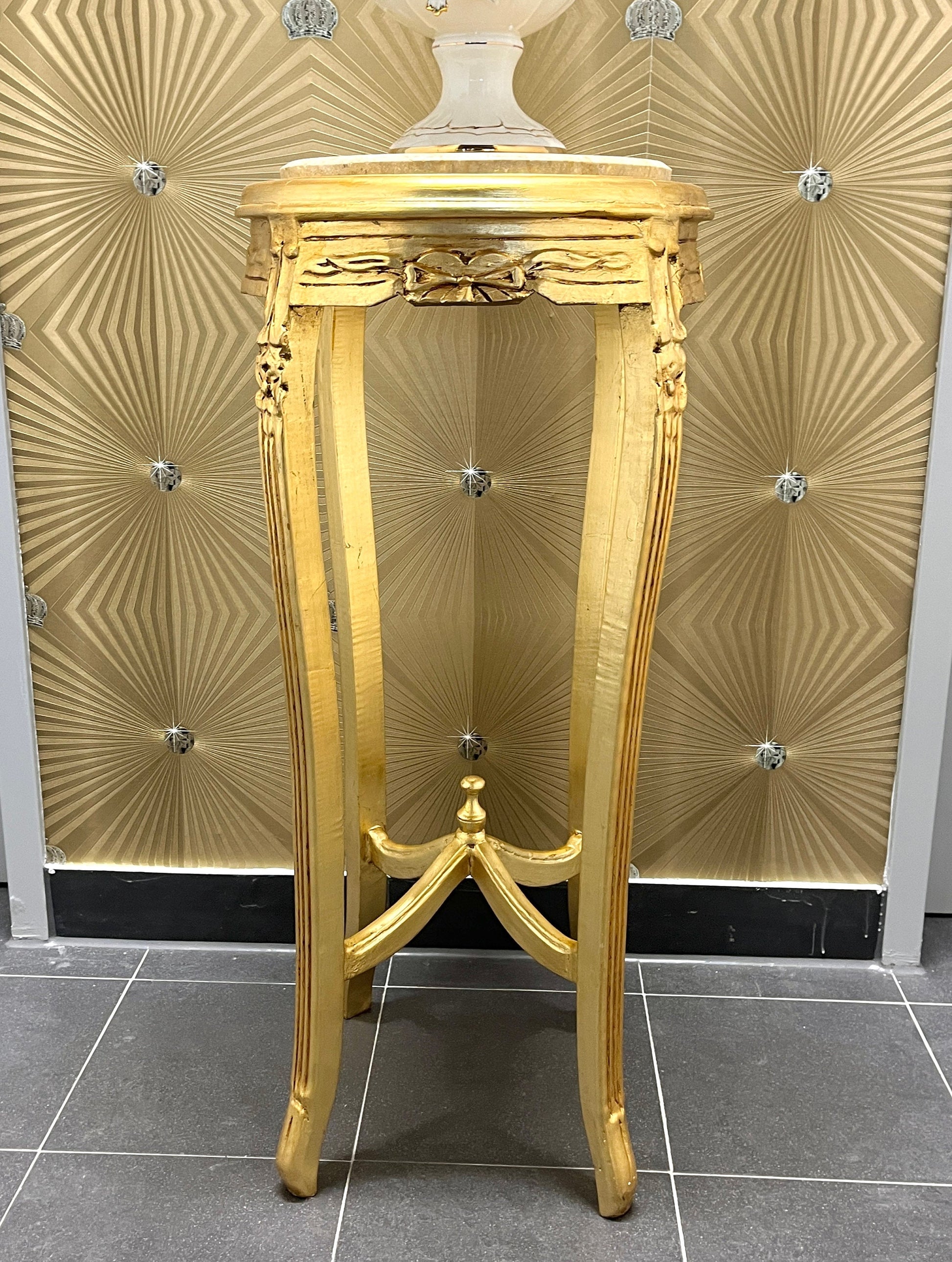 A simple retro French baroque style tall side table in reproduction with a marble slab at top. It’s nice to have it as a retro home decor.