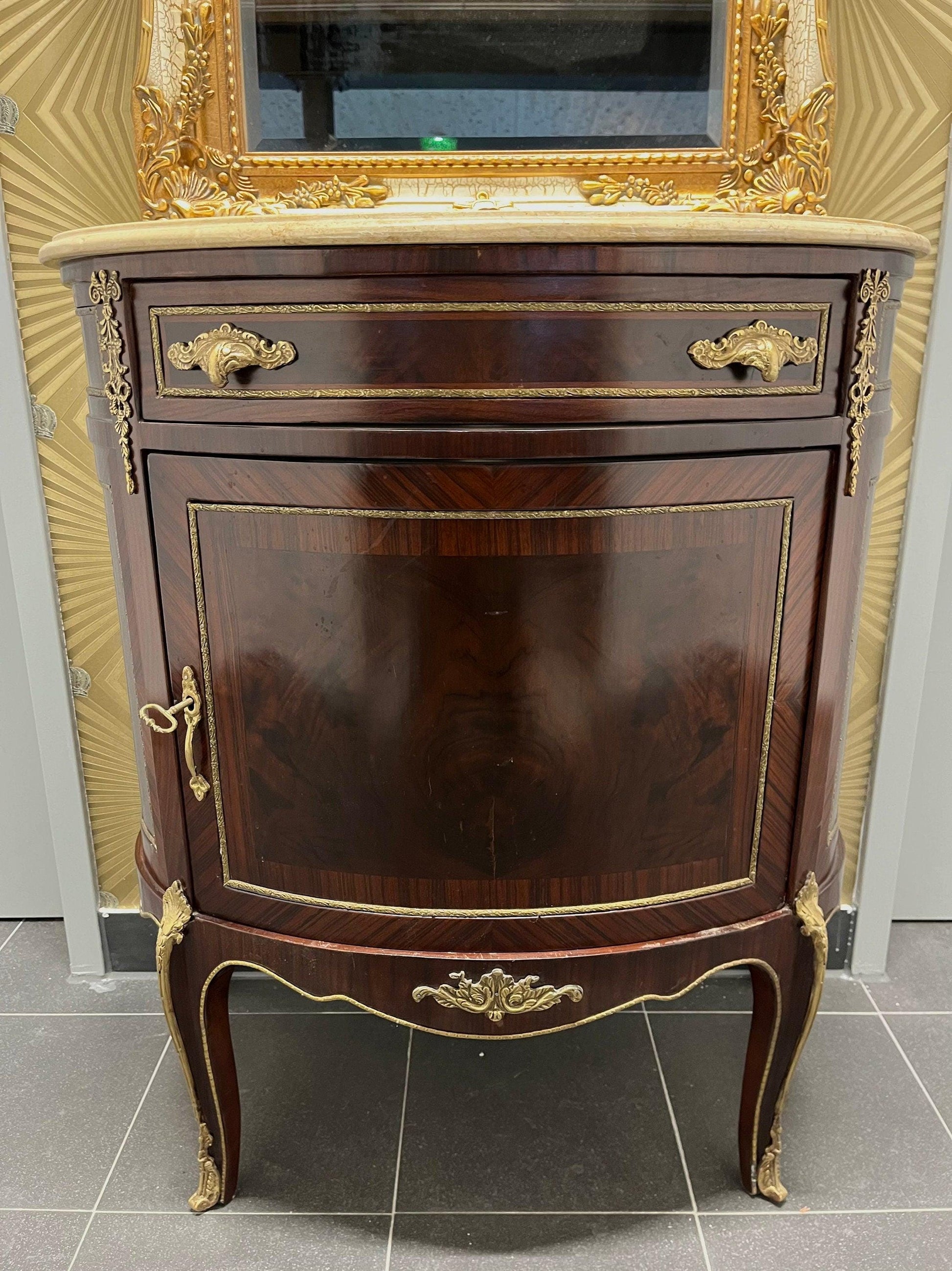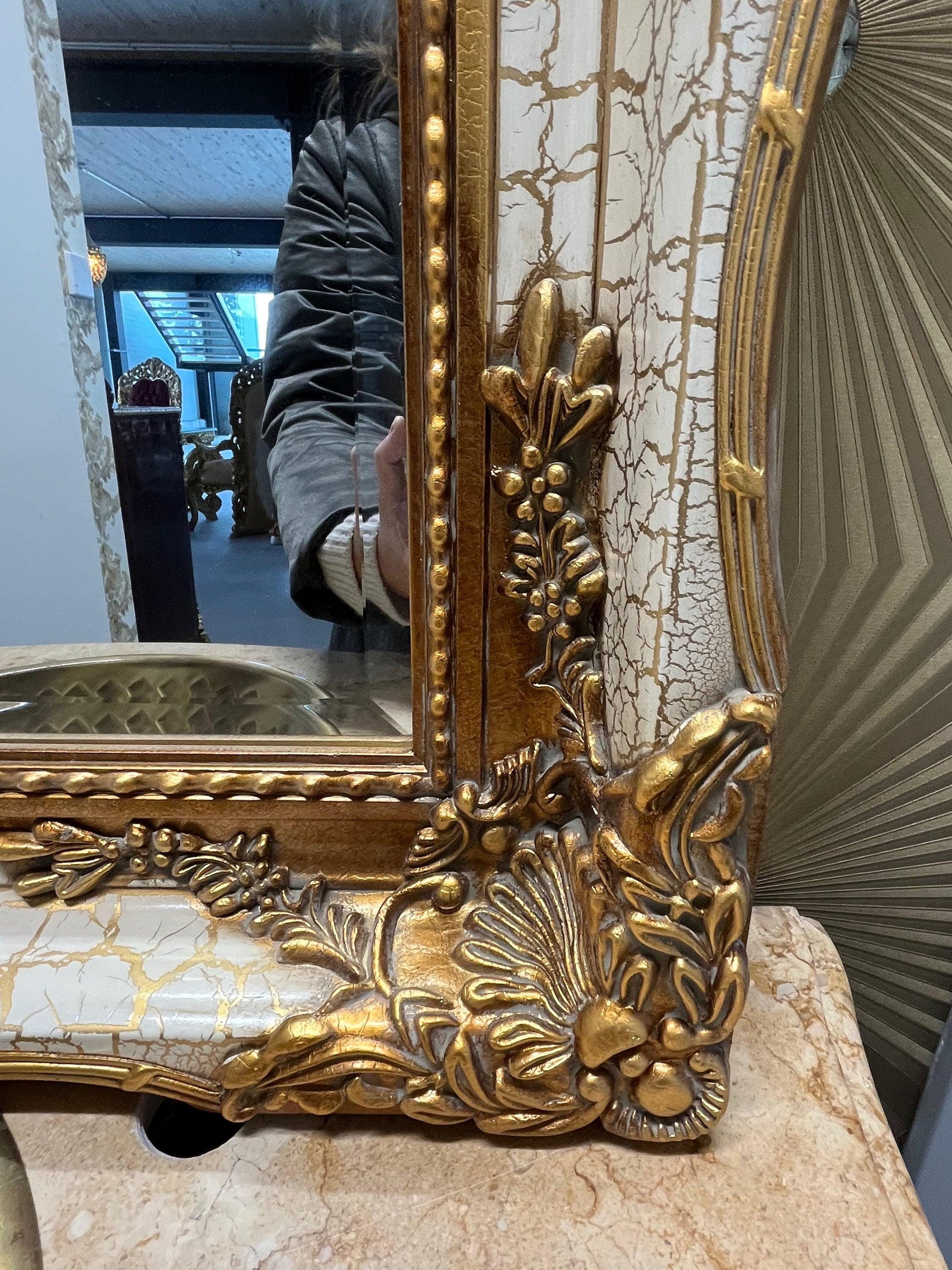 Handmade French Baroque Washbasin Cabinet with Marble Top & Mirror