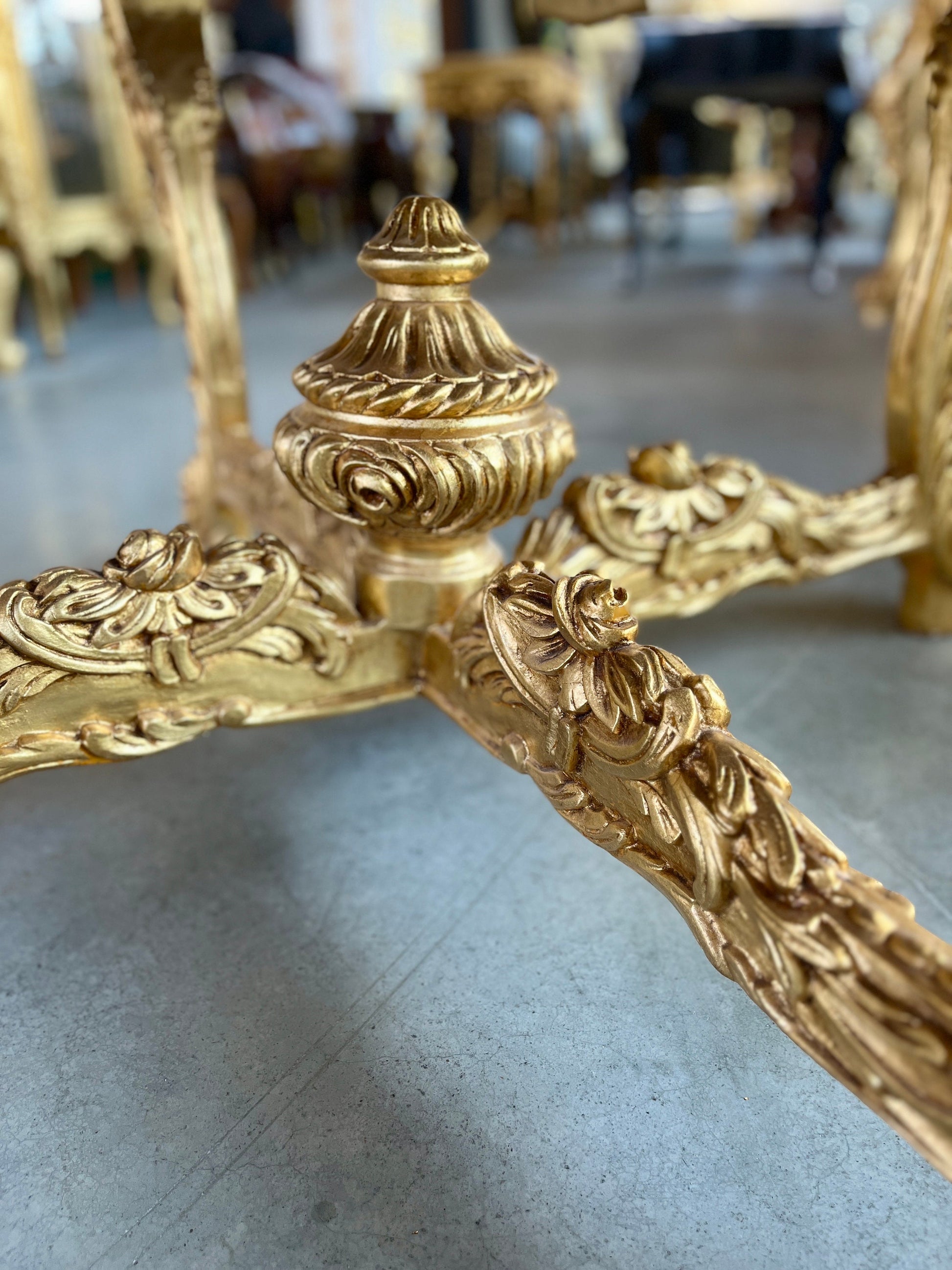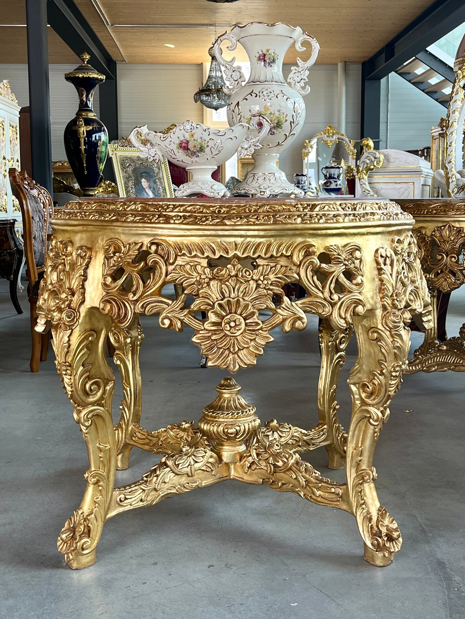 The detailed carvings with floral and tendril patterns as well as the curved legs give the table an elegant and majestic look. The craftsmanship makes this table a real eye-catcher.