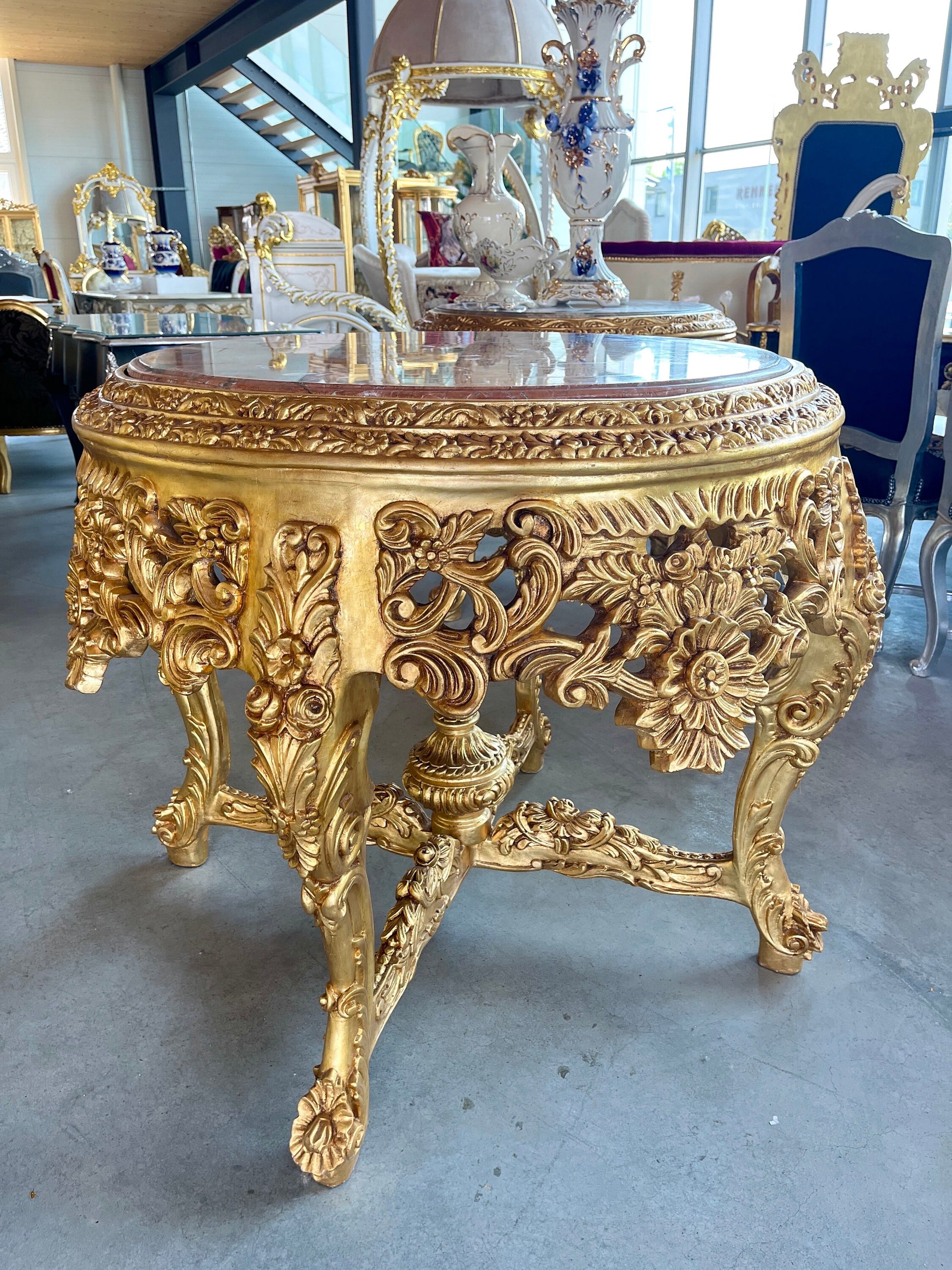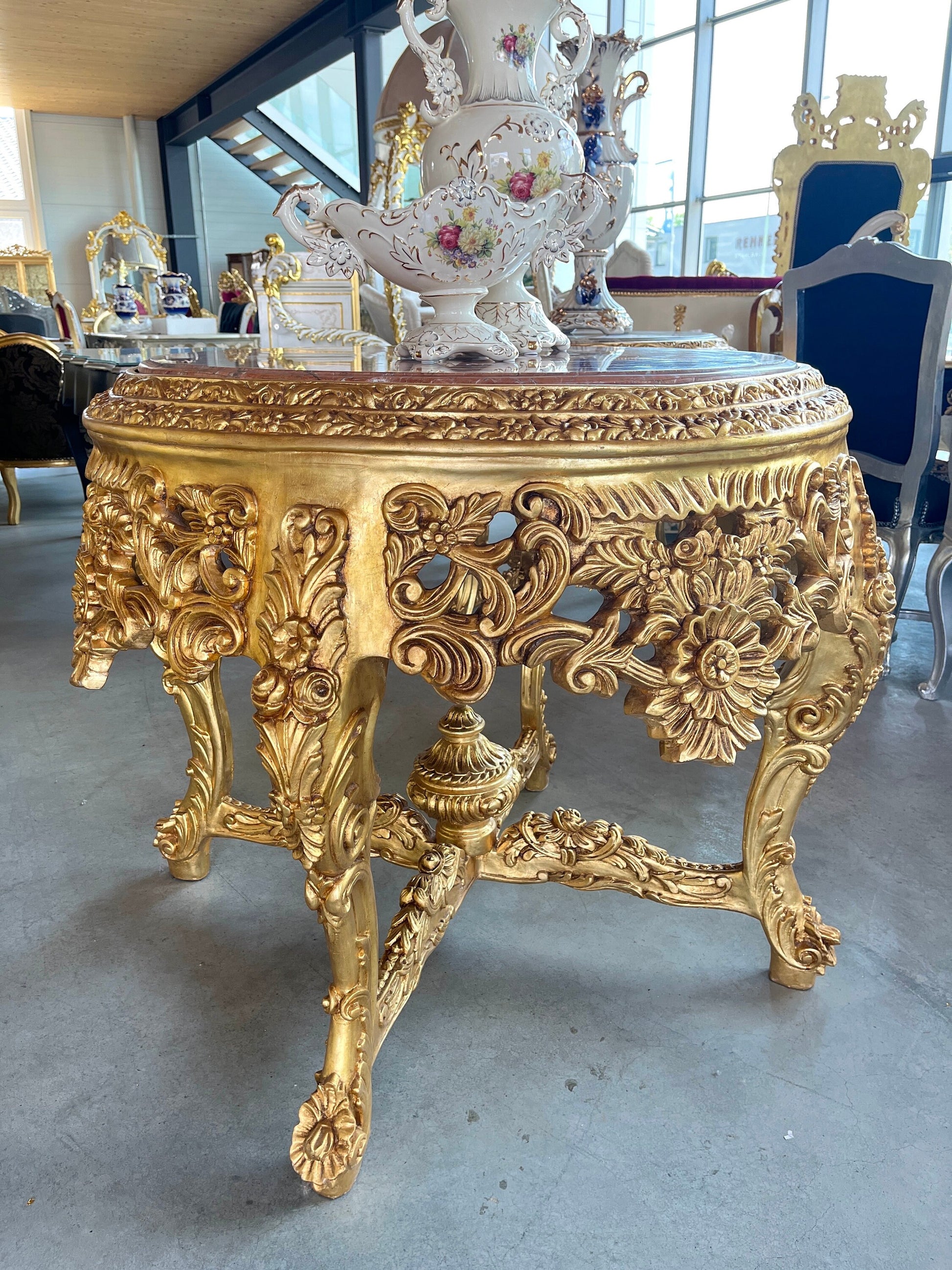 Wooden Decor Table Marble Top Royal Baroque Style Round Table Marble Slab in Orange French Antique Style for Home Decor Hotel Decoration