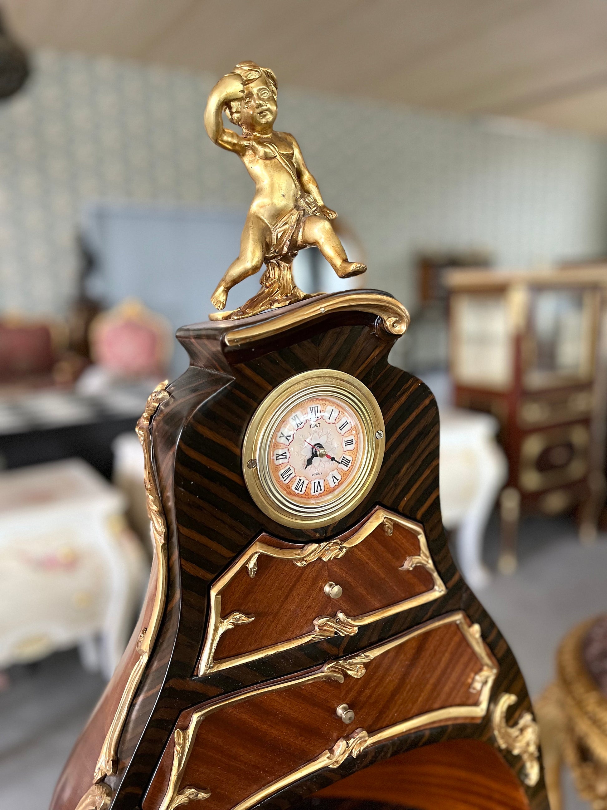 A royal baroque style desk with a clock shelf & an angel statue in bronze at the top. Definitely a noble piece 💯