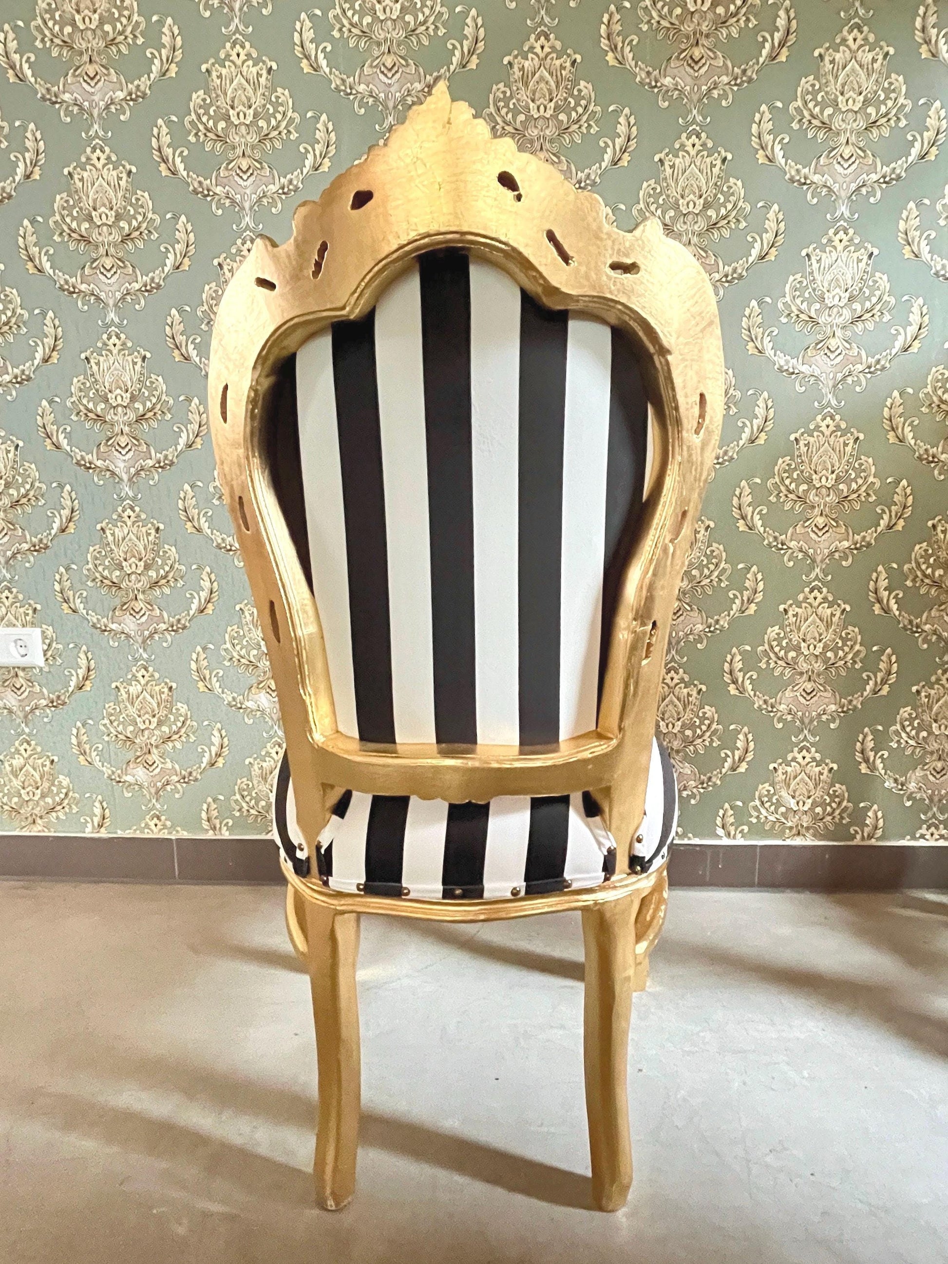 Accent Chair Deluxe Velvet in Black Stripe French Louis XV Style Chair in Gold Finish Retro Baroque Rococo Style Dining Chair for Home Decor