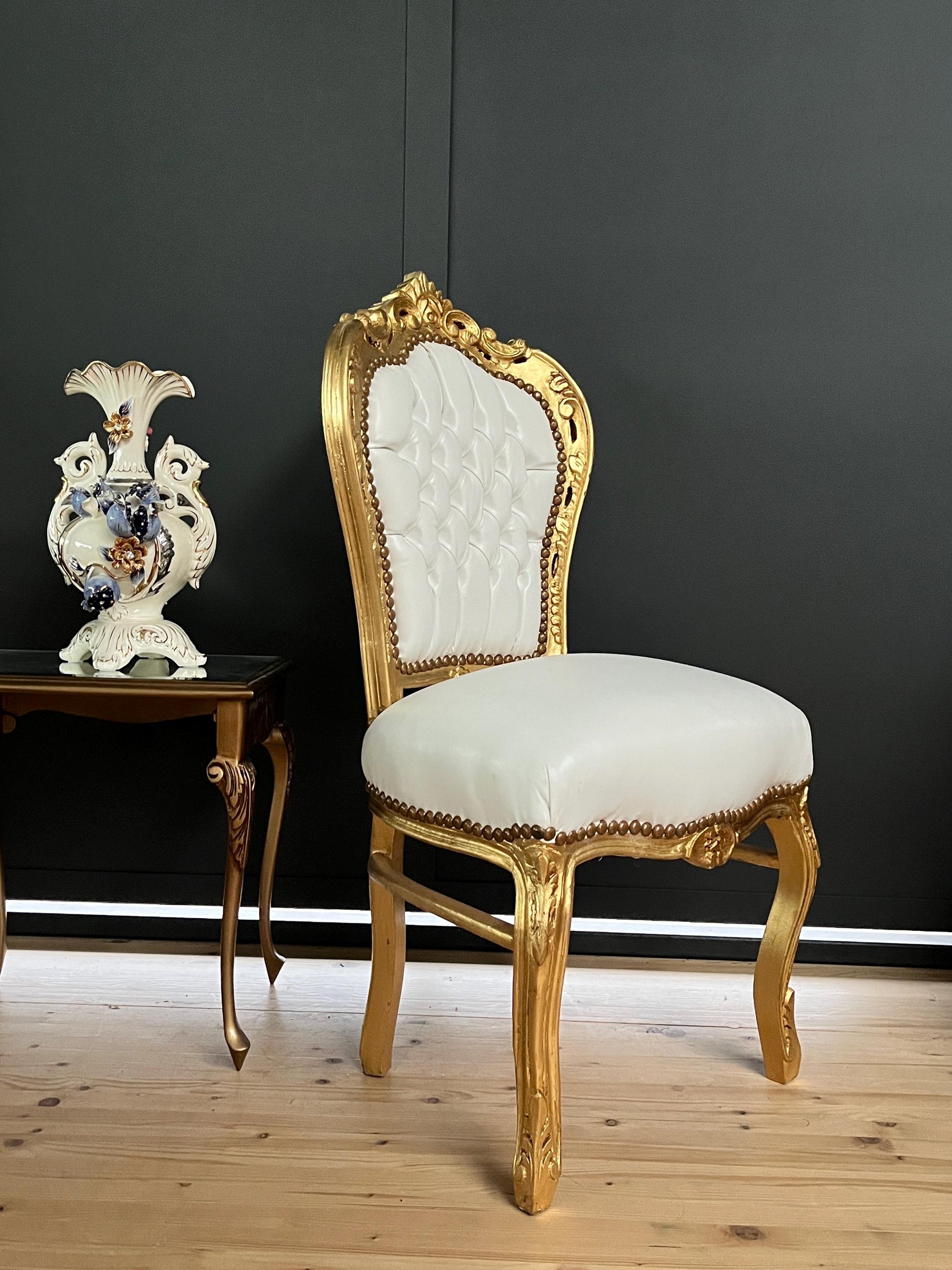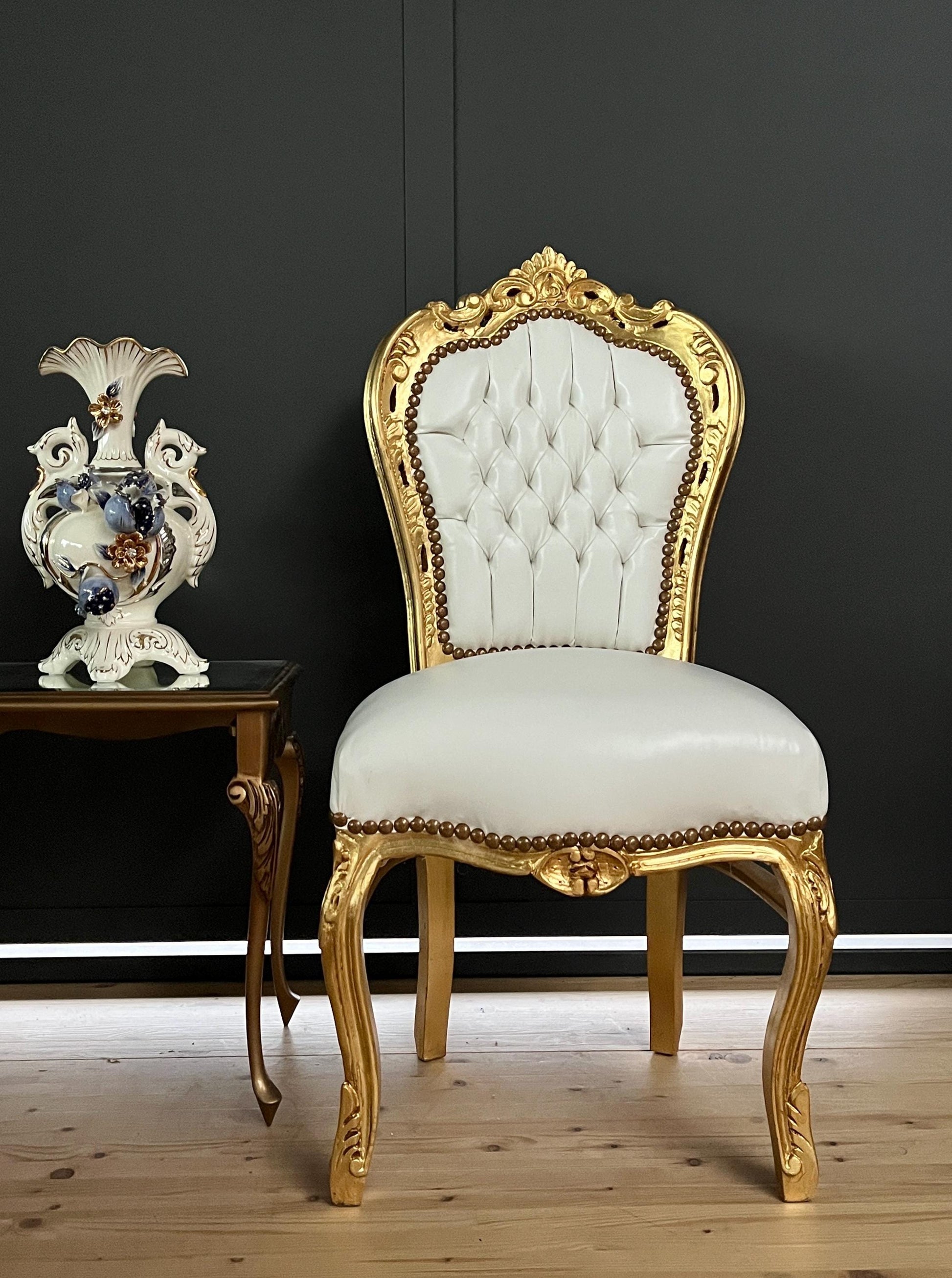 Accent Chair White Color French Baroque Rococo Style Chair for Dining Room Antique Style Dining Chair White Color in Gold Finish for Party