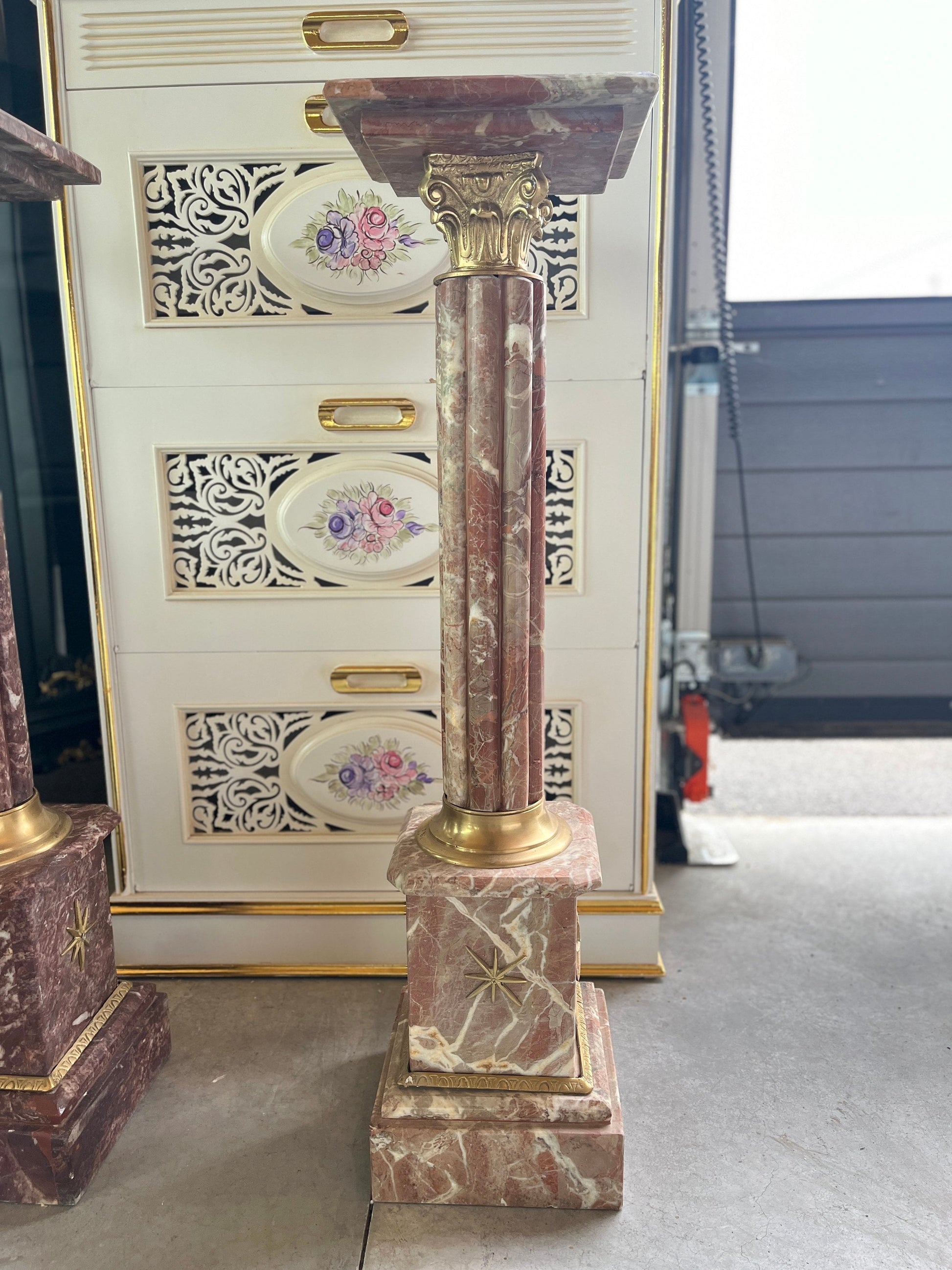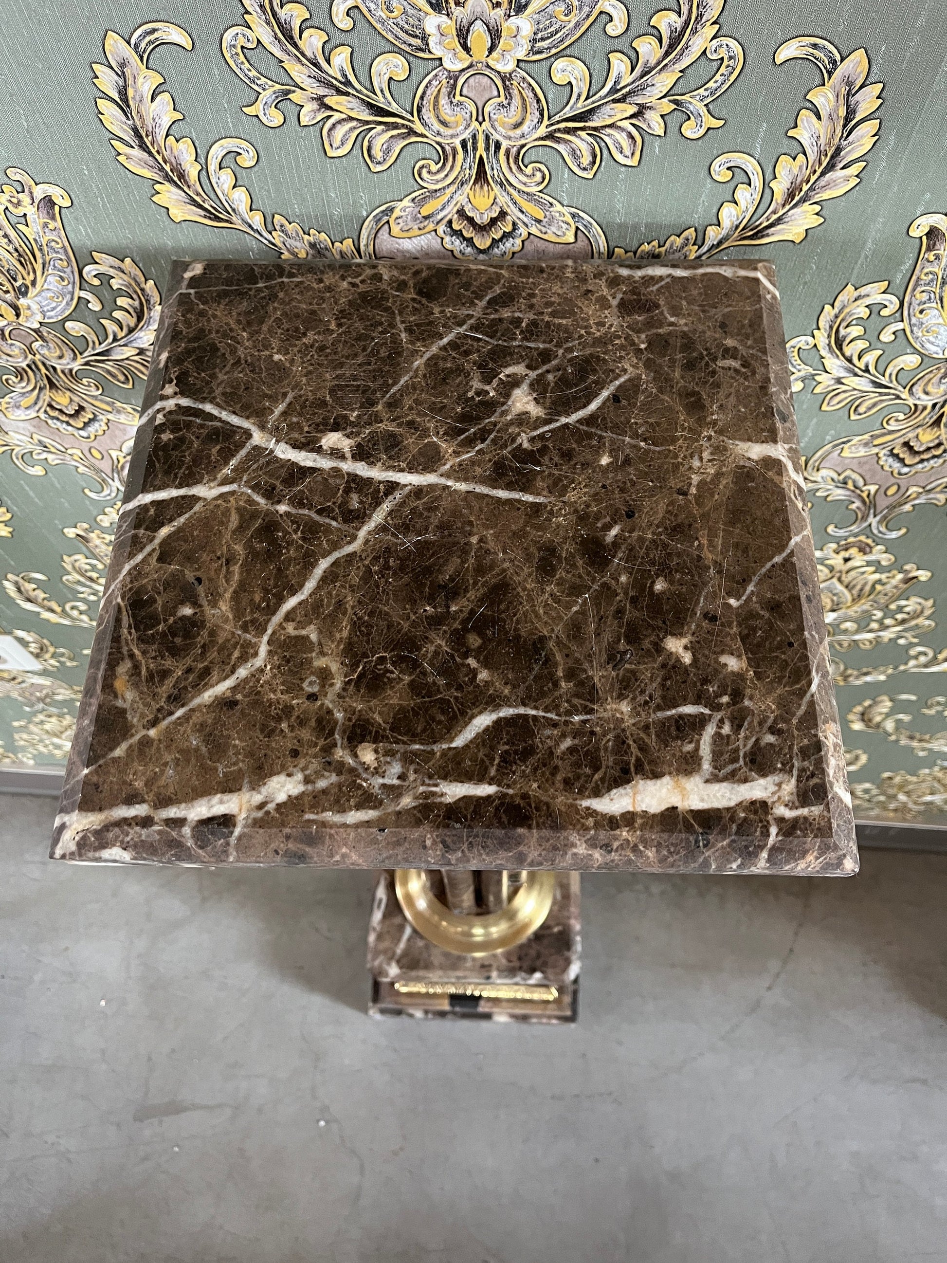 A royal antique style marble pillar in reproduction with ornaments in brass.
